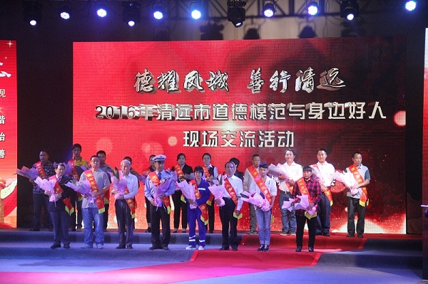 10月31日下午,“2016年清遠(yuǎn)市道德模范與身邊好人現(xiàn)場(chǎng)交流活動(dòng)”在清遠(yuǎn)市國(guó)際會(huì)展中心舉行。市政協(xié)主席梁志強(qiáng)、市委常委宣傳部部長(zhǎng)崔建軍、市人大常委會(huì)副主任鄧三妹等領(lǐng)導(dǎo)出席了本次活動(dòng)。本年度共產(chǎn)生15名“2016年清遠(yuǎn)市道德模范”、6名“道德模范提名”和65名“行業(yè)最美人物”。我司董事長(zhǎng)黃齊福被評(píng)為“2016年清遠(yuǎn)市敬業(yè)奉獻(xiàn)道德模范”稱(chēng)號(hào)并應(yīng)邀出席活動(dòng)現(xiàn)場(chǎng)。