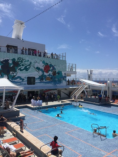 雖然嘉博員工每年都有旅游,也算得上見多識廣,但是坐郵輪還是大姑娘上轎——頭一回。船上的游樂休閑項目讓人目不暇接,大型表演、歌手樂隊演唱、游泳、水上娛樂、健身、攀巖、籃球、高爾夫、保齡球、電影、酒吧、餐廳、購物、賭場等等數(shù)不勝數(shù),只要是你能想到的,一應(yīng)俱全。如果你有足夠的精力,可以一整天不停地參加各類活動。當(dāng)然也可以啥都不干,躺在沙灘椅上望著藍天和大海冥想發(fā)呆。大家懵逼了,幸福來得太突然了!