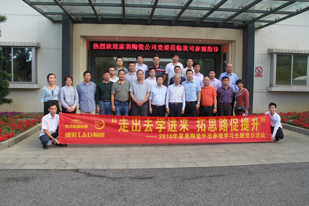 10月26日下午,廣東家美陶瓷有限公司黨委專職副書記孫青帶領(lǐng)20多名黨員到嘉博公司參觀、交流。家美公司的黨員先參觀了嘉博公司研發(fā)中心、黨建文化展廳等場所,隨后由嘉博公司董事長、黨支部書記為大家上黨課。雙方還就非公企業(yè)的黨建工作進(jìn)行了交流。