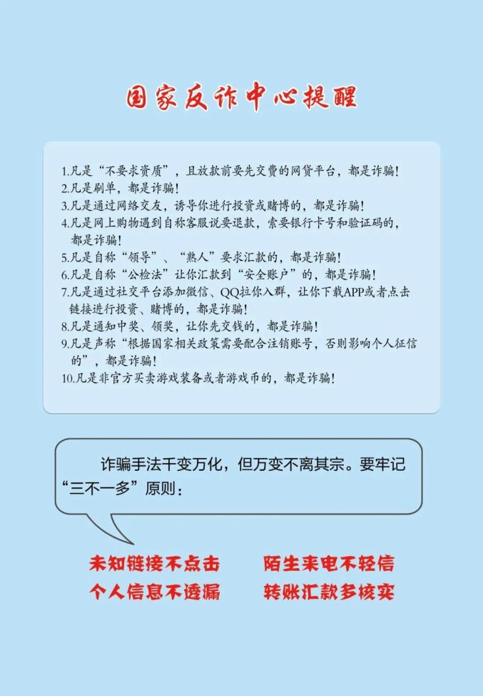 為進一步擴大反詐宣傳覆蓋面,提高廣大群眾防騙意識,國家反詐中心制作了《防范電信網(wǎng)絡(luò)詐騙宣傳手冊》,向廣大人民群眾介紹了十種常見的電信網(wǎng)絡(luò)詐騙類型,揭批了詐騙犯罪手法、解析了典型案例,同時進行了防騙提示。下一步,將以《防范電信網(wǎng)絡(luò)詐騙宣傳手冊》為載體,通過新聞宣傳報道、新媒體平臺、組織線下宣傳活動等方式向全社會開展廣泛的防騙宣傳。